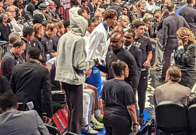 杜兰特身穿便装来到主场看比赛,戴着一顶粉色针织帽并且坐在篮网替补席,据报道,比赛结束后,杜兰特在工作人员的护送下离开了巴克莱中心,没有回答记者的问题,也没有任何眼神交流。