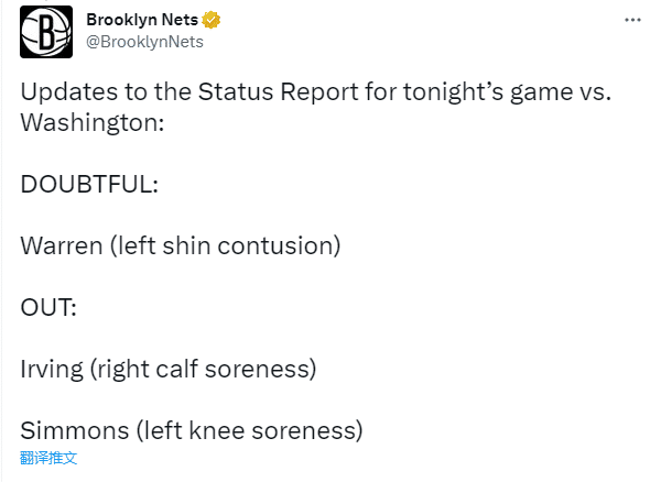 此前欧文申请离队后,篮网记者报道欧文没有出现在伤病名单上,他可以出战,而今天对阵奇才赛场,篮网官方突然宣布欧文因伤缺席比赛。