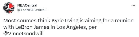 曝篮网很快交易欧文!后者目标与詹皇重聚 名记:他的篮网生涯已结束