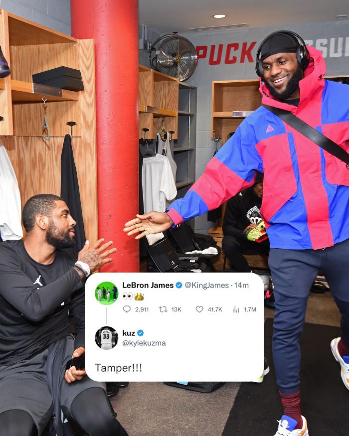 欧文申请离队后,詹姆斯发推晒出眼睛和王冠表情,湖人旧将库兹马调侃:违规招募;湖人助教菲尔-汉迪也晒出眼睛表情,湖人名宿魔术师更直接:就我个人而言,我很想看到欧文穿上紫金战袍。