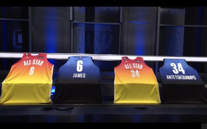 今年全明星赛球衣曝光,美媒晒出詹姆斯两种不同颜色的6号球衣和字母哥两种不同颜色的34号球衣,由于队长选人环节改成了正赛开打前30分钟选人,联盟为每名球星都提前准备了两件球衣。