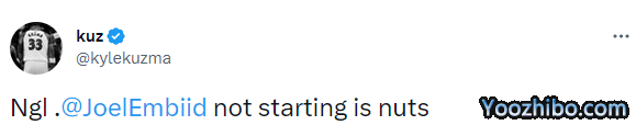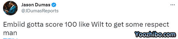 库兹马为恩比德落选首发抱不平,发推写道:老实说,恩比德没有入选首发疯了吧;有记者表示恩比德只要像张伯伦那样单场轰下100分才能赢得尊重。