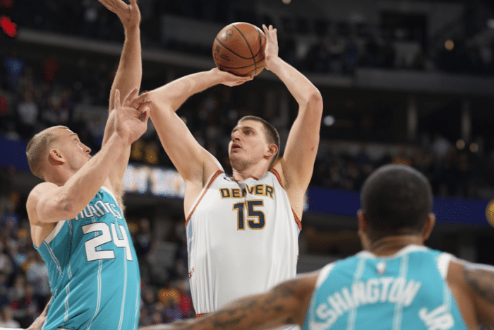 下半场,约基奇第三节打满12分钟,拿到11分6助攻4篮板,打出全能表现,并且带领掘金拉开分差,三节战罢掘金领先14分。