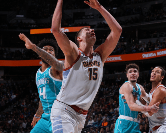 末节黄蜂10-3追到仅落后7分,约基奇上场后轰进三分,保护篮板以及造犯规两罚全中;约基奇外线再次开火,乌布雷回应三分,两队对攻展开拉锯战,约基奇翻身勾手得分,约基奇助攻布朗轰进三分,最终掘金拿下比赛。