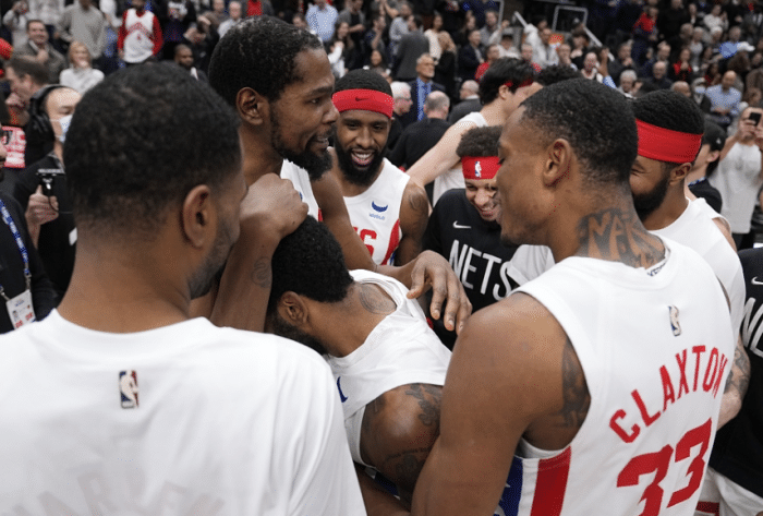 欧文首次压哨绝杀:杜兰特紧抱他全队疯狂庆祝 最后一攻KD主动放弃绝杀