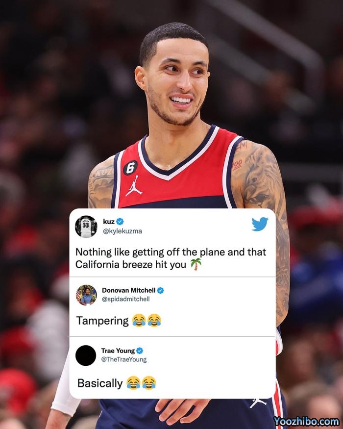 库兹马发推写道:没有什么比下飞机更能感受到加利福尼亚的微风了;米切尔第一时间在评论区留言:违规(笑哭表情),特雷-杨凑热闹,写道:确实如此(笑哭表情);之后库兹马回复米切尔:我就住在那里,我怎么违规了,哈哈。