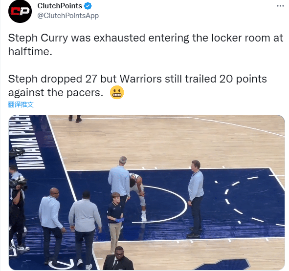 第二节,勇士进攻停滞而且防守频频漏人,单节被步行者投进9记三分球,勇士最多落后到25分,在这样的情况下,库里拖着疲惫的双腿继续带队追分,里突外投单节又拿到12分,可库里半场27分勇士却落后20分,勇士单节狂输19分。