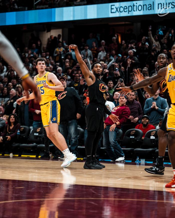 下半场,米切尔第三节延续火热状态,里突外投继续疯狂砍分,单节又贡献12分;末节92平之后,米切尔彻底杀疯了,带队骑士5分钟打出21-6的超级攻势,比赛还剩3分多钟,湖人换下主力,打得湖人放弃比赛,最终骑士守住主场,并且14分大胜湖人。