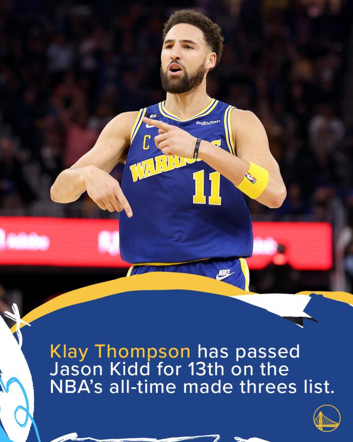2、汤普森三分命中数连超诺维斯基和基德两大名宿,升到历史三分榜第13位