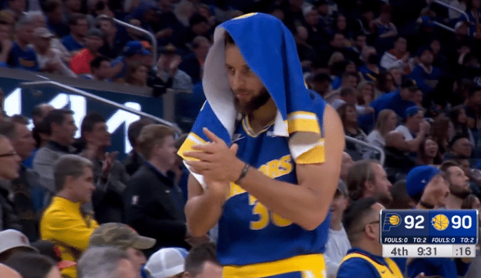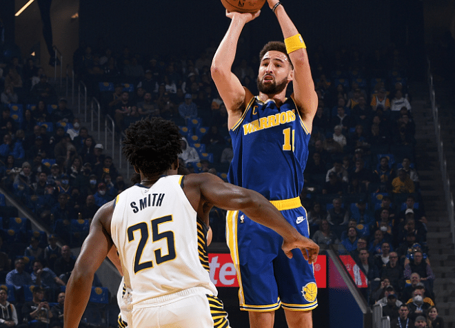 末节,汤普森再次带队扭转局面,连续两记三分反超比分,希尔德回应三分,两队展开激烈拉锯战,打着打着库里翻腕失误、三分投出三不沾,2分36秒步行者领先7分;普尔三分打铁,克莱中投也不中,库里上篮也没有,最终勇士输掉比赛,排名疯狂下降。