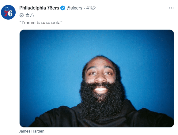 据76人记者Keith Ponpey报道,虽然哈登官方列为出战成疑,但他将复出回归,所有的迹象都表明哈登今天复出对战休斯顿火箭;里弗斯确定哈登复出,但哈登出场时间将会受限制,未透露具体的上场时间;之后76人官宣哈登复出,晒哈登自拍照并配文写道:我回来了。