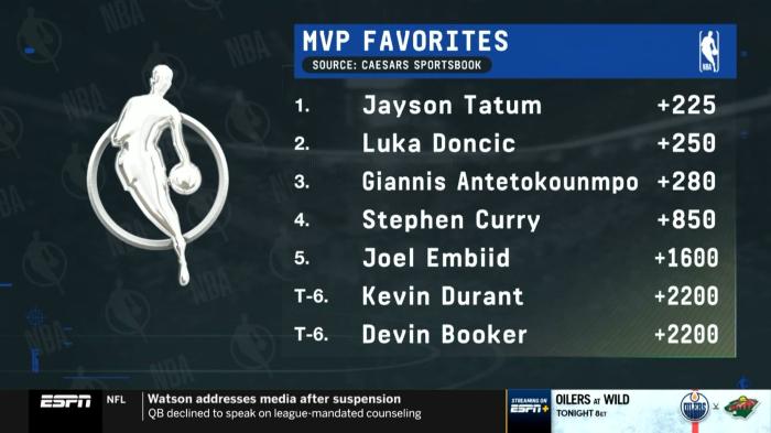 最新MVP赔率出炉:塔图姆领跑联盟库里第4 杜兰特和布克并列第6