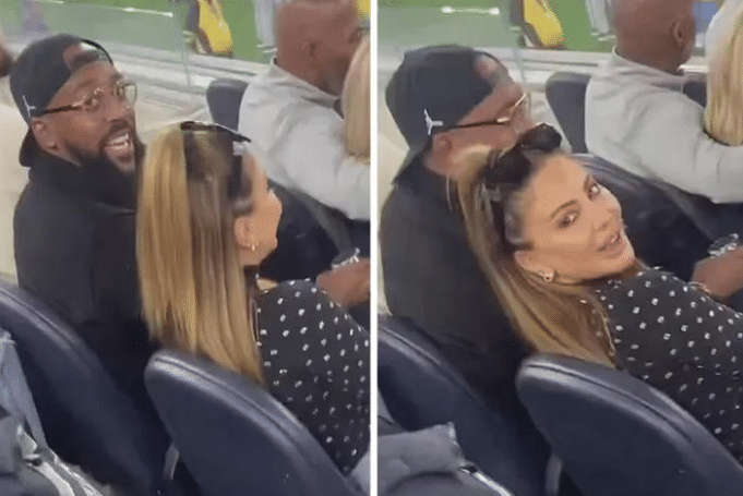 马库斯戴着眼镜、反戴棒球帽,拉尔萨坐在马库斯身旁,一起观看比赛,期间一位球迷怒骂他们约会,这位男子怒喷他们,嘴里说着:嘿,拉尔萨,你在干什么?!“你跟个小男孩在一起,那还是乔丹的儿子?”“你真是个冷血的MF!”“小老弟,你也真的是不要脸!”