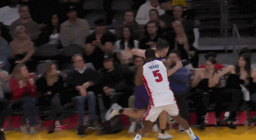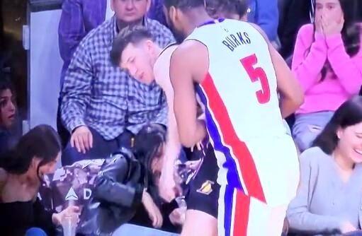 里夫斯前三节得到8分,而他真正的爆发留在了第四节。第四节,里夫斯为了救球,冲向场边,而正好中线附近坐着一排美女。里夫斯刹不住车,直接撞向美女们。几位美女花容失色,但真被里夫斯撞到的两位,惊讶之余后也露出笑容。毕竟,看着一位NBA球员冲向自己,这一幕确实有些刺激。