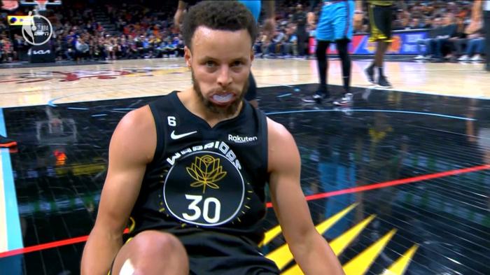 下半场,库里第三节再次命中三分,之后连续两次上篮不进,库里还因拍飞篮球吃到技术犯规,死球时库里弯腰扶膝显得很疲惫;暂停回来,库里顶着防守抛投,之后强突上篮惨遭兰代尔盖帽;库里单节又贡献9分,无奈三节打完勇士落后14分。
