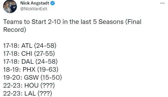 湖人2胜10负与火箭战绩相同,仍排名西部倒数第二,随时可能掉到西部倒数第一。