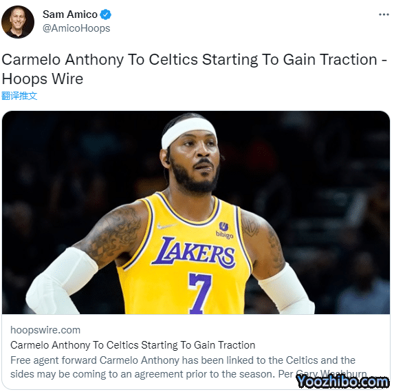 此前《波士顿环球报》记者Gary Washburn表示,凯尔特人考虑签下安东尼开始引起了一些关注,因为安东尼可能是现在市场上最好的前锋,尽管他年纪大了,但其在进攻端表现卓有成效。