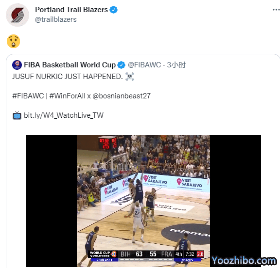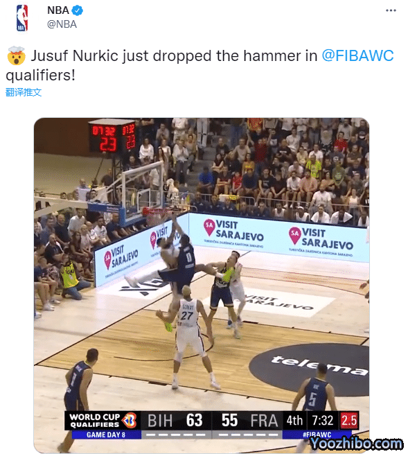 努尔基奇的表现完胜戈贝尔,全场轰下21分9篮板,末节7分多钟,努尔基奇在外线持球,虚晃过掉对手,然后持球杀到禁区,上演残暴的隔扣,暴力隔扣普瓦里耶引热议,NBA官方、FIBA世界杯官方发推盛赞,开拓者官方晒惊呼表情,众美媒更是刷屏转发狂赞。