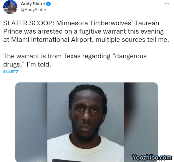 来源:24直播网08-26 12:2424直播网08月26日讯 ,森林狼悍将惹上事了,据美记者Andy Slater报道,森林狼球员托里恩-普林斯因在得克萨斯州携带危险药物被通缉,当地警方下达通缉令,最终普林斯在迈阿密国际机场被逮捕,并且入狱被关押,当地时间星期四下午6点被关押的。