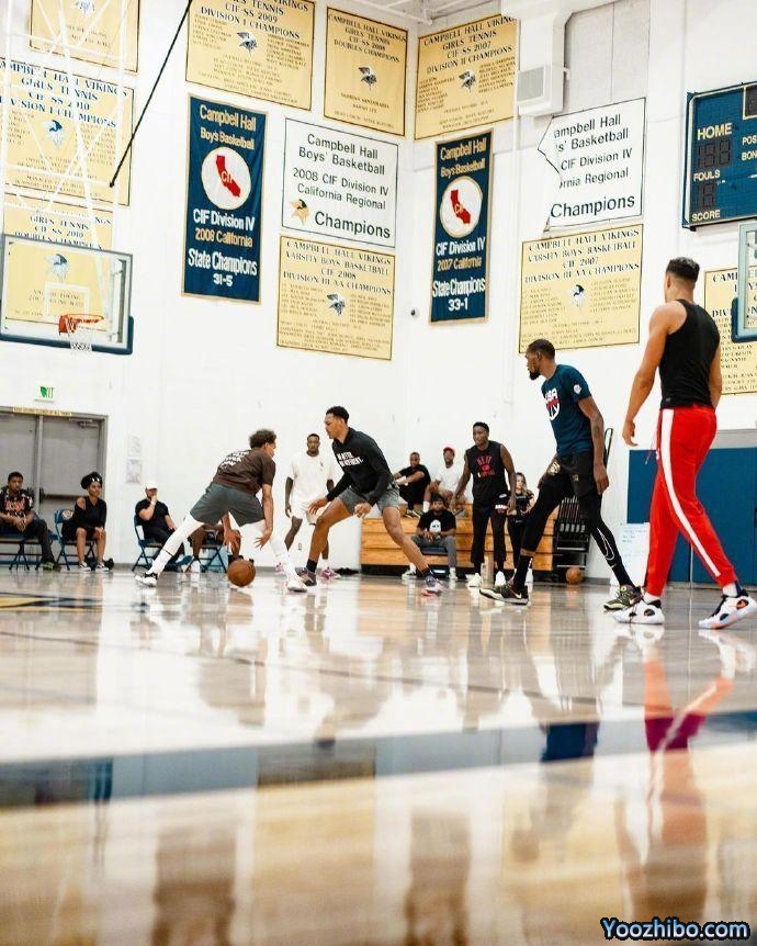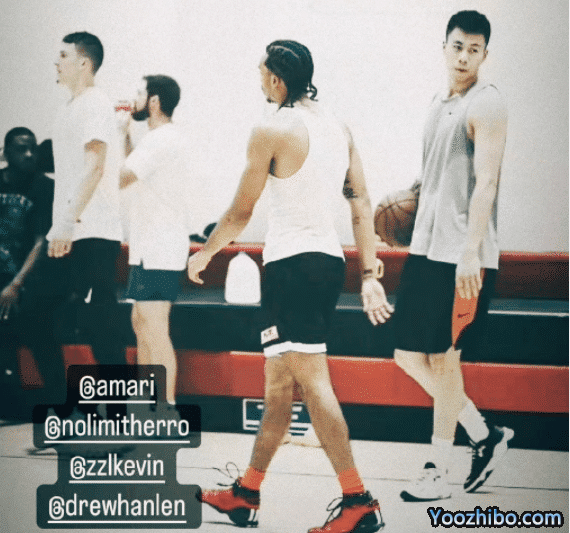 为了梦想,张镇麟是奋不顾身,而幸运女神似乎对于张镇麟还是挺垂青的,比如说,他得到了宝贵的和球星训练的机会。8月21日,老鹰队球星特雷杨更新了自己的社交媒体,晒出了训练的照片。在照片中,我们可以看到特雷杨和杜兰特、欧文、奥拉迪波等NBA球员一起训练,而在照片中,细心的球迷也发现了张镇麟的身影(图片中,张镇麟只贡献出了背影)。