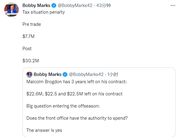 2021-22赛季常规赛,布罗格登场均上场33.5分钟,得到19.1分5.1篮板5.9助攻0.8抢断,未来3年他的年薪分别是2273万美元、2250万美元和2250万美元。