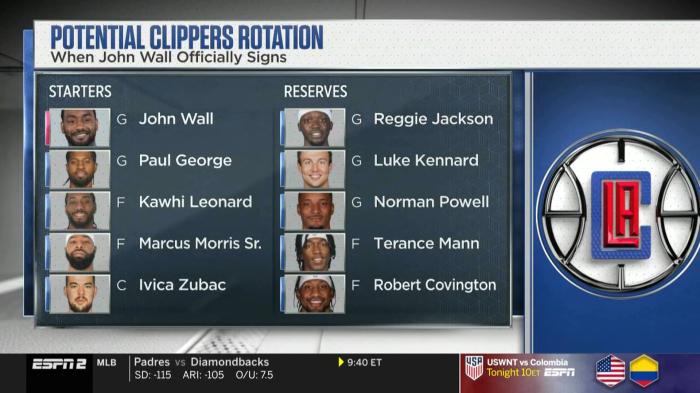 新赛季,快船的核心阵容预计将是沃尔、乔治、小卡、小莫里斯和祖巴茨首发,雷吉-杰克逊、肯纳德、鲍威尔、曼恩以及考文顿等人替补;快船阵容豪华,但新赛季他们将面临高昂的奢侈税,不过快船老板鲍尔默不差钱,只要能夺冠,他愿意砸钱。