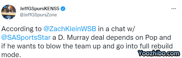 Zach Klein还表示,这笔交易目前在等马刺掌门人波波维奇拍板,取决于他是否想开启重建。