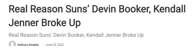 美媒In Touch报道称,布克和詹娜分手了一周半,但布克在两周前被看到在斯科茨代尔(亚利桑那州的一个城市)与多个女孩调情。消息人士透露,虽然布克没有被拍到和那些女孩亲吻,但这位太阳球星明显表现得像单身一样。