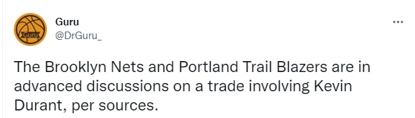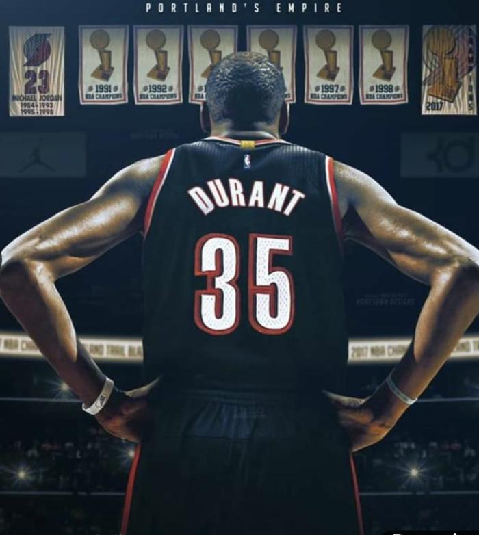 利拉德招募杜兰特冲上推特热搜引热议,“杜兰特去开拓者”一词也冲上热搜,美媒疯狂转发如此P照,甚至有球迷调侃:据消息人士透露,布鲁克林篮网队和波特兰开拓者队正在就涉及凯文-杜兰特的交易进行深入讨论。