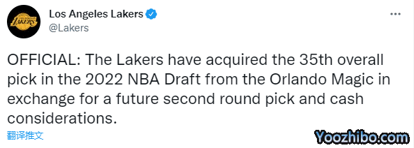 今年湖人没有选秀权,首轮签在浓眉大交易时送到了鹈鹕,次轮选秀权则在交易中被送到奇才,现在属于马刺;如今湖人通过2换1交易获得次轮35号签,究竟他们看中了哪位年轻人?我们拭目以待,选秀结果将在不久后全部出炉。
