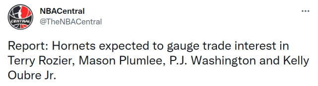 BR记者杰克-费舍尔报道,黄蜂计划在布里奇斯成为受限制自由球员之前评估外界对罗齐尔、PJ-华盛顿、乌布雷和普拉姆利的交易兴趣。黄蜂和罗齐尔在去年休赛期续约4年9700万。乌布雷的合同还剩1年1260万,普拉姆利的合同还剩1年约900万。华盛顿的新秀合同还剩一年,此前有报道称黄蜂愿意打包选秀签交易他。