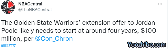 来源:24直播网06-21 16:0624直播网06月21日讯 ,据《旧金山纪事报》记者Connor Letourneau报道,勇士给普尔的续约报价可能至少是4年1亿美元,还表示勇士应该会续约卢尼,更是透露伊戈达拉将退役,他已打完最后一场NBA比赛。