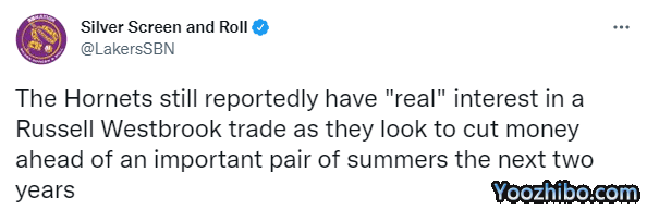 续约,再加上未来将与三球续约,现在是获得威少到期合同的好时机;美媒建议黄蜂用海沃德+罗齐尔向湖人报价交易威少。