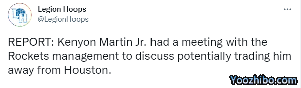 8、小马丁近期与火箭管理层商讨了交易自己的可能性,小肯扬-马丁申请离队的原因是他对自己在队内的上场时间不清晰;目前有很多球队包括一些季后赛球队,都有兴趣引援马丁。