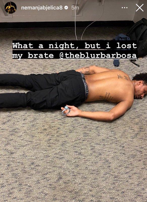 别利察拍下这一幕,晒照并且配文写道:疯狂的一晚,但我失去了我的好兄弟。别利察还细心地给不省人事的巴博萨的手上P了一枚大钻戒。