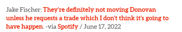 Jake Fischer还报道了爵士另一位球星米切尔的现状。只要米切尔本人不向爵士申请交易,爵士就肯定不会动他。在Fischer看来,米切尔申请交易的可能性很低。“我不认为这会发生,”他在节目上说道。