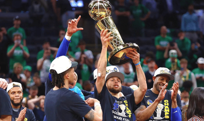 时隔4年夺得总冠军,勇士也创造了纪录,他们成为了NBA历史上第一支在三个赛季内从NBA战绩最差球队蜕变为总冠军的球队,他们在2019-20赛季打出了联盟最差的15胜50负的战绩,但是排名联盟垫底,受到伤病侵袭,杜兰特等人离开,勇士从总决赛的球队跌落到谷底,之后拿下榜眼签,选中了怀斯曼。随后一个赛季,勇士折戟附加赛,本赛季强势崛起,夺得总冠军,创造纪录。