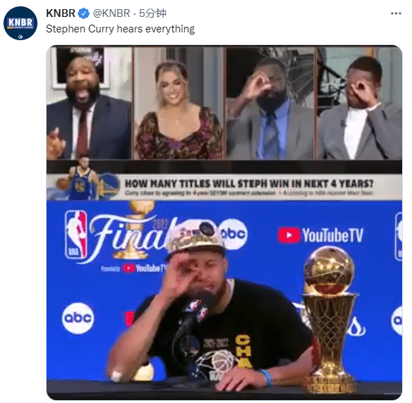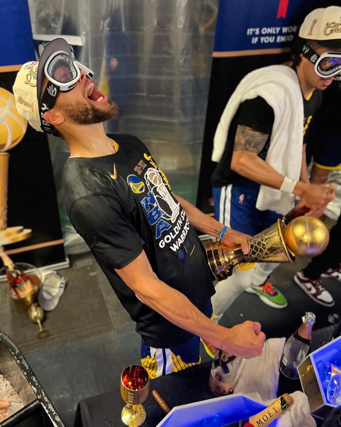 谈到夺得FMVP,库里表示:我曾看着它和我如此接近,三次。现在我可以把它带回家了。我想说些漂亮的话,但我说不出来,这种感觉太棒了,太TM棒了。