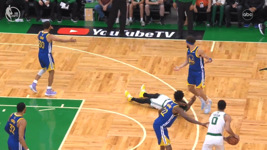 第一节8分58秒,库里和斯玛特卡位时撞倒斯玛特,因此吃到一次犯规,对此库里摊手表不满;随后凯尔特人前场发球,在无球跑位时汤普森撞倒斯玛特,也吃到一次犯规,库里和克莱都摊手不满;勇士两大球星都因撞倒斯玛特而犯规,见状,科尔向裁判施压,向裁判示意斯玛特两次假摔造犯规。