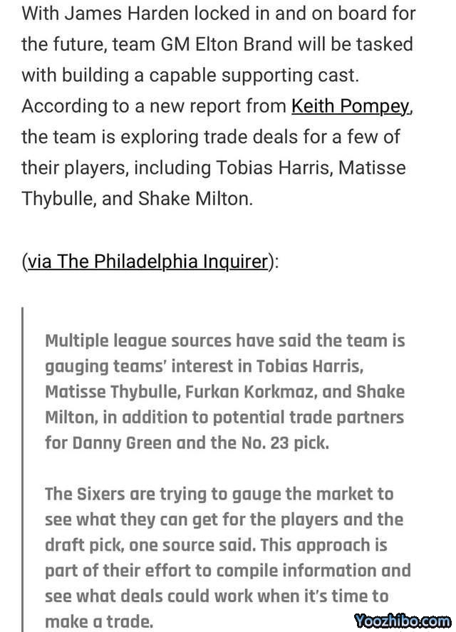 根据《费城问询者报》的记者基斯报道,数字人已经意识到现有阵容无法夺冠,所以非常希望在休季有大动作,让球队有进一步的补强。不久之前就有了很多关于数字人的交易流言风声,其中相对靠谱的就是费城是准备用格林和今年23号签搞点动作,换来一位强即战力球员。