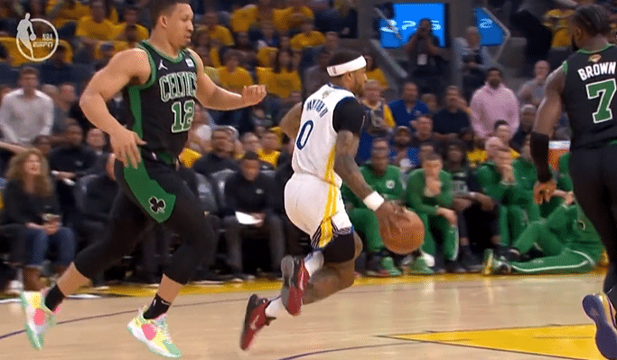 争议!勇士悍将绊倒自己却获利,球迷吐槽裁判:主场哨太明显