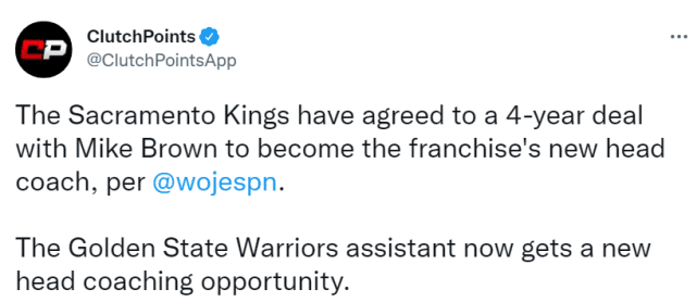 国王聘布朗出任新帅签约四年!勇士冠军助教被挖 曾执教詹皇科比