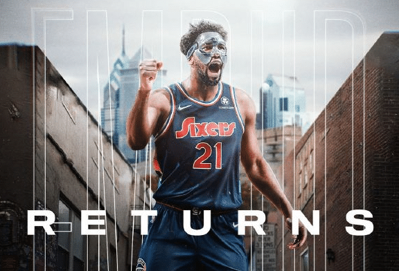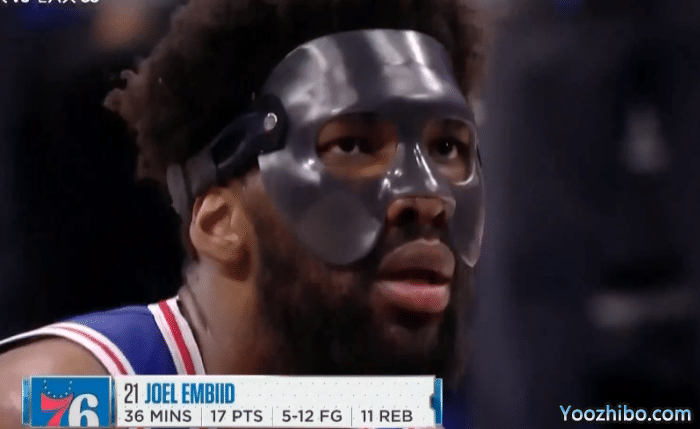 恩比德在休战两场之后戴上面具重返赛场,但仍然要顶着眼眶骨折和手指韧带撕裂的伤病。但全场比赛,恩比德展示了自己的能力,12中5轰下了18分11板。数据并没有特别爆炸,但他的存在,堪称球队的中流砥柱,全场也高呼MVP!
