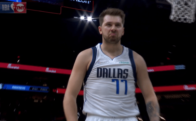 东契奇梦幻2+1引热议!撞倒对手露发狠表情庆祝,球衣快被撑爆了