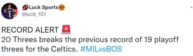 5.绿军全场投中20个三分,创季后赛队史新高。