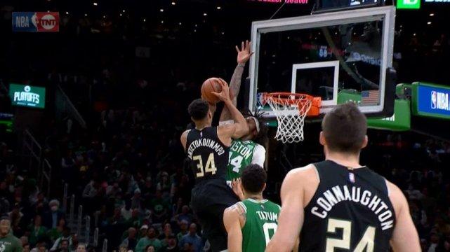 第三节,布朗的手感下降,单节4中0没有得分,上半场得到10分的塔图姆,在这一节得到9分,雄鹿第三节终于有所反弹,单节26-18领先凯尔特人,而字母哥找回自我,单节18分,和绿军全队得分持平。不过,雄鹿依然大比分落后。最后一节,雄鹿无法进一步缩小分差,只能缴枪投降。美媒还晒出了罗伯特-威廉姆斯用肘部封盖字母哥的一幕。