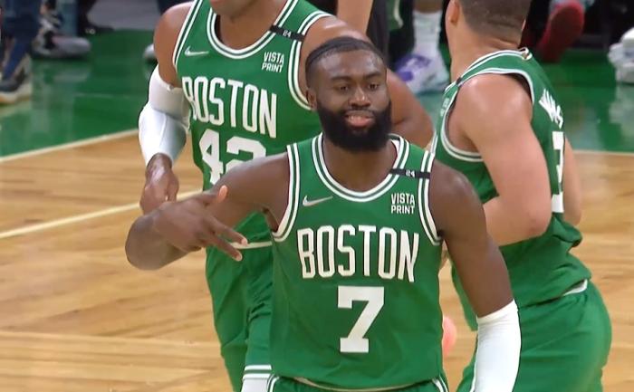 绿军双星59分大胜雄鹿!布朗征服詹皇霸气庆祝,塔图姆末节接管比赛