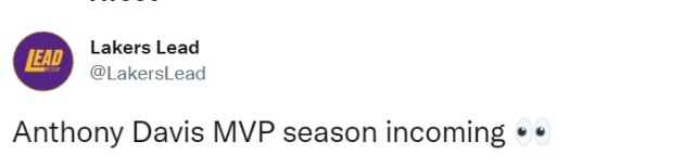 一般情况下,内线球员过重容易有更大的伤病隐患,锡安就是一个典型的例子。此前也有不少专家建议浓眉减重,现在看来,他的身型保持不错,洛媒Lakers Lead在社媒上转发了浓眉的新照片,并评价道:“安东尼-戴维斯的MVP赛季即将到来!”巴克利不久前排出目前联盟前10的球员时,把浓眉放在了第10位。
