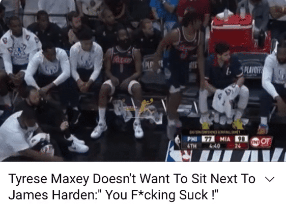 第四节4分40多秒,76人换下主力时,哈登先是和小乔丹坐在一起,马克西则是坐在别的空位上,之后哈登起身换座,把坐垫扔在地板上,并且和马克西坐在一起,可马克西起身走开,并且坐在小乔丹身旁,美自媒体晒这一幕表示马克西不愿坐在哈登身旁,还说马克西对哈登爆粗:你TM烂透了。
