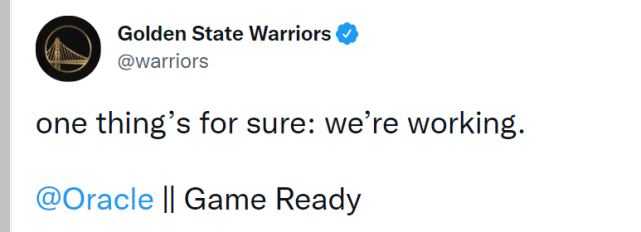 出发前,勇士官方还晒出了球队的训练照,并配文写道:“一件事是确定的:我们在训练。”双方的G1将在北京时间5月2日凌晨3点30分打响,大家觉得谁会拿下开门红?